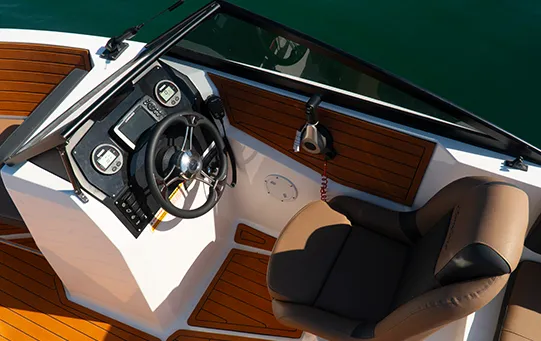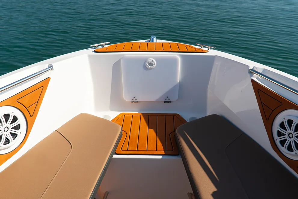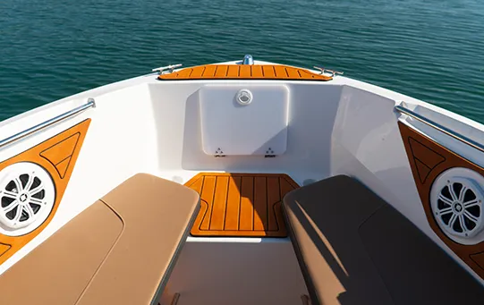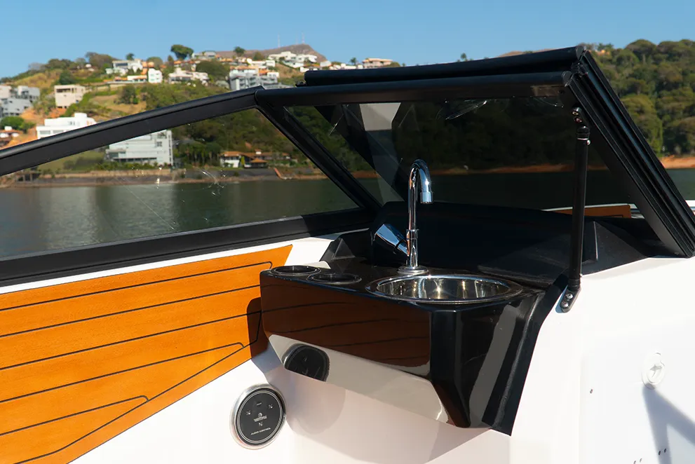 Única embarcação com solário de proa, passarela de popa e predisposição para instalação de autofalantes na popa, além do costado alto que proporciona mais segurança e maior boca.