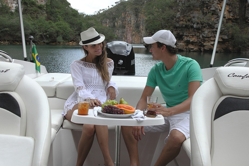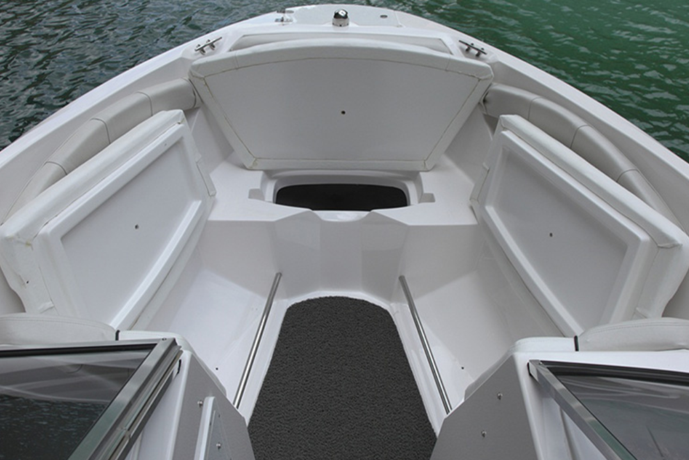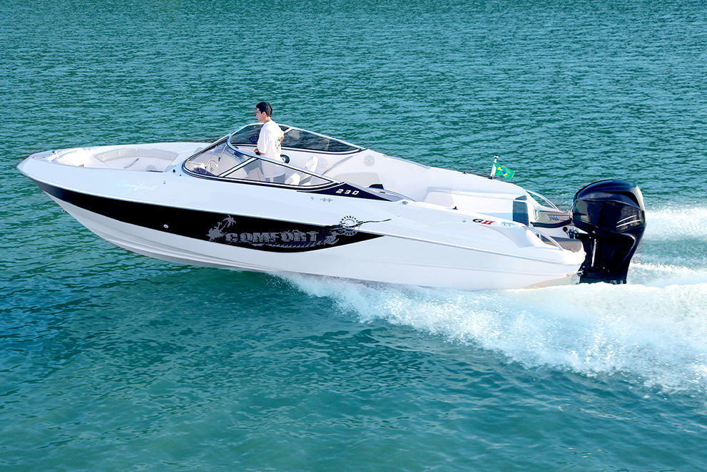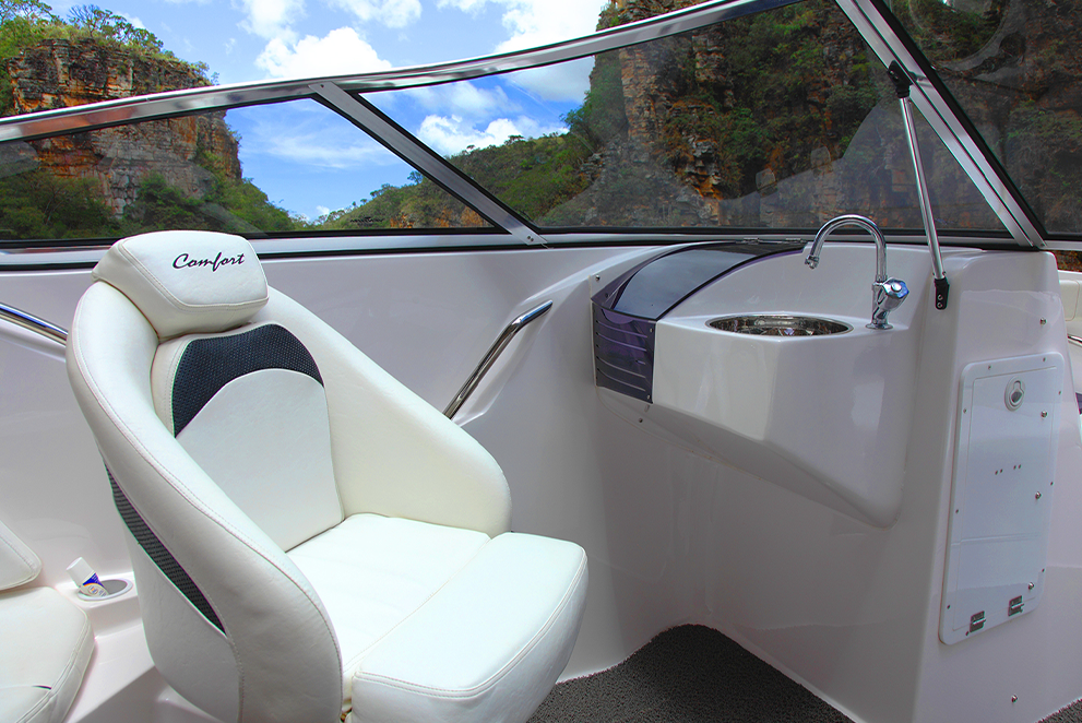 Maior e melhor paiol de popa da categoria com acabamento em gel coat